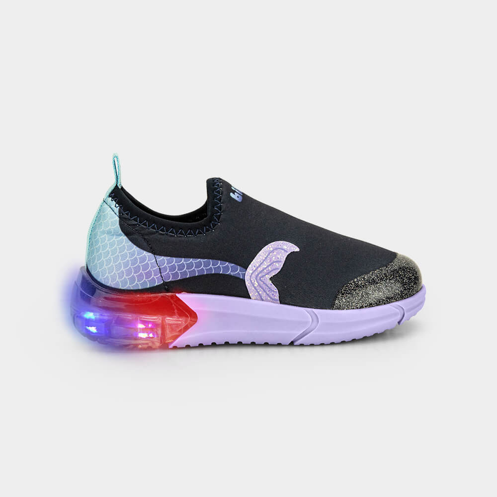 Descubra o tênis infantil feminino perfeito para todas as ocasiões, especialmente para as aventuras diárias das meninas! <br> Confeccionado em elastano, este modelo é fácil de calçar e se ajusta perfeitamente ao pé, garantindo conforto e praticidade. <br> O design moderno é realçado por uma estampa divertida de fundo do mar, com conchas e estrelas, trazendo um toque de ludicidade e diversão ao look das pequenas. <br> Além disso, o solado conta com **luzes multicoloridas** que piscam a cada passo, encantando as crianças. <br> A palmilha **Fisioflex** proporciona uma sensação de andar descalço, oferecendo maciez e conforto incomparáveis. <br> Aposte neste tênis feminino para proporcionar estilo e alegria em todas as ocasiões!