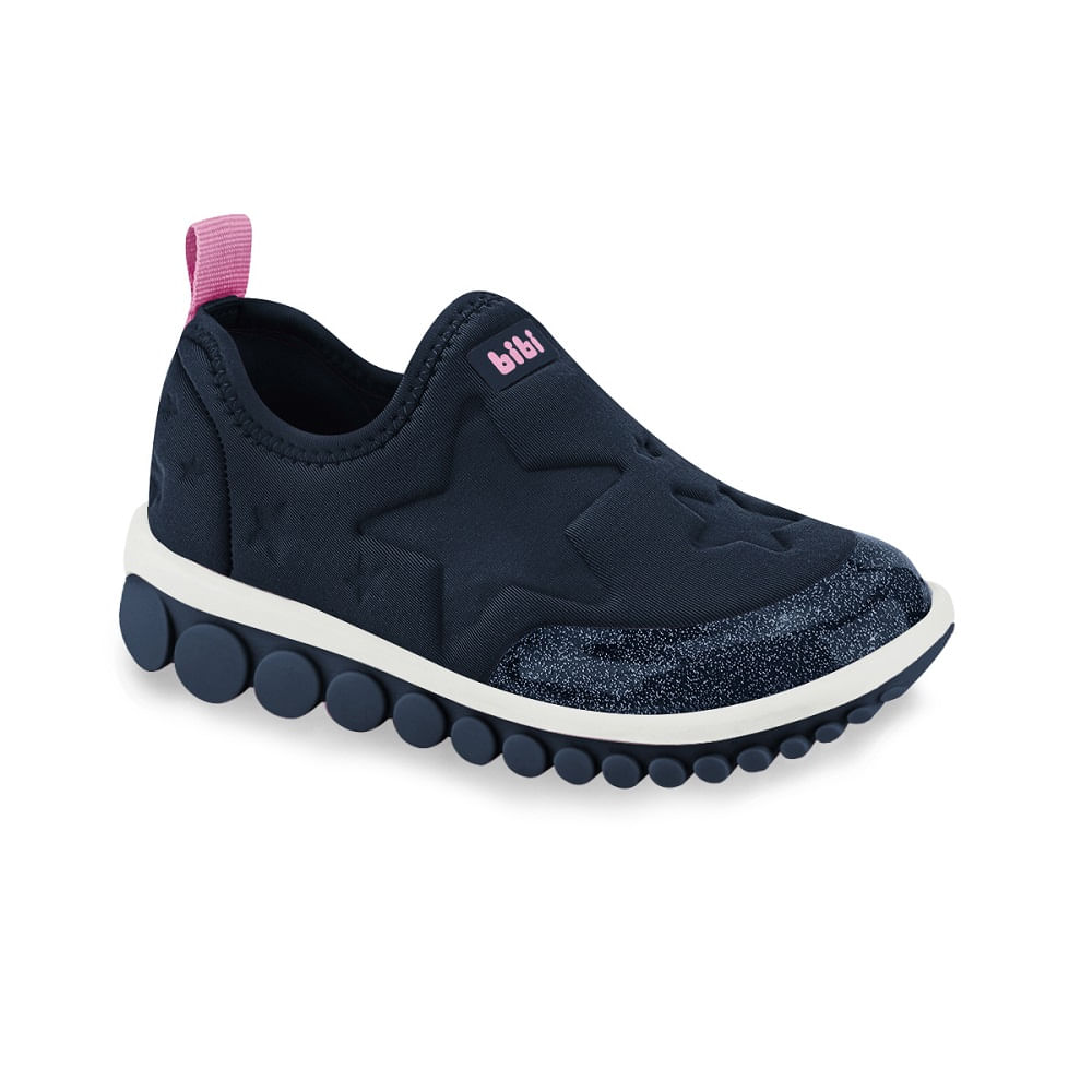 O Roller 2.0 é um modelo perfeito para as maiores aventuras do dia a dia das crianças. O tênis infantil não tem cadarço, o que o deixa mais seguro nas brincadeiras, além de ser muito fácil de calçar, devido ao tecido em elastano super maleável. O tênis infantil para as meninas na cor azul naval com toque em rosa, conta com detalhe de frequência, formando estrelas e deixando seu visual super estiloso e proporciona todo o estilo que as meninas adoram. É o calçado infantil perfeito para os mais diversos momentos. Entre as principais características da linha Roller está o solado com rolamentos que acompanham os movimentos do caminhar. A exclusiva tecnologia da nova palmilha Fisioflex Dry da Bibi, além de super fofinha, ela possui pipetas que geram a sensação de andar descalço através de estímulos nos pezinhos, auxiliando no desenvolvimento natural e saudável da criança.