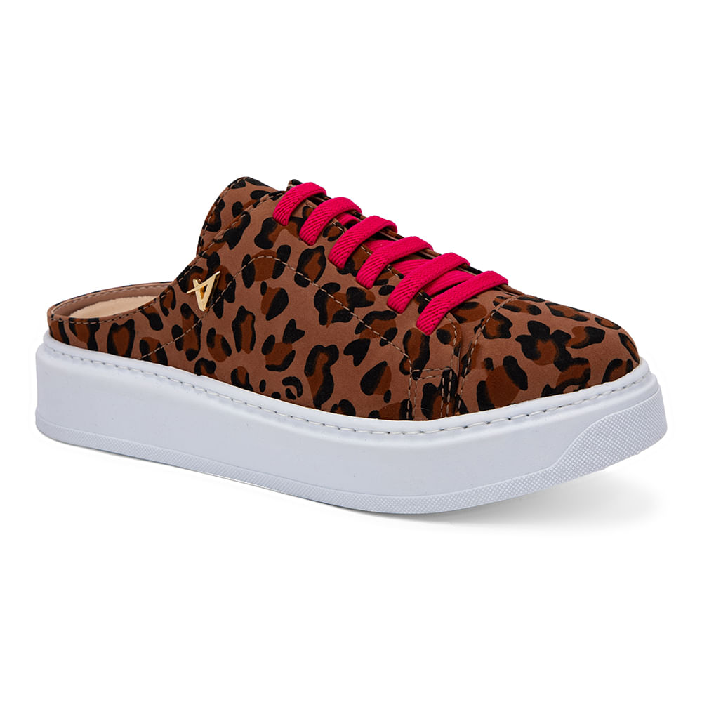 O Tênis Mule Calce Fácil tem cadarço com elástico falso para ajustar perfeitamente ao seu pé seu solado flat traz conforto e segurança, o tênis mule dá um ar mais comfy para o seu look se você adora conforto sem perder o estilo o tênis mule é a escolha perfeita para montar suas produções. O Tênis Mule Calce Fácil, pode ser usado desde um office look ao um look mais casual, ele é um calçado que combinda com praticamente tudo, calças jeans, vestidos, shorts, alfaiataria e vestidos seja qual for sua escolha você vai arrasar. . Produto: Tênis Mule Calce Fácil Código : 11078276VPIN Categoria: Tênis Tipo de Salto: Grosso Altura do Salto: 3,5 cm Tipo de Bico: Redondo Material Externo: Napa Forma : Normal compre a numeração que costuma usar Peso: 410 g Cor: Pink /Onça Gênero: Feminino.