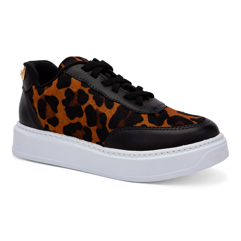 O Tênis Animal Print tem cadarço facke é superconfortável e versátil, traz o básico do preto com o glamour da estampa de onça, perfeito tanto para o dia a dia quanto para ambientes mais formais, com suas estampas modernas e estilosas você consegue montar looks casuais e office looks perfeitamente.<br>O Tênis Animal Print combina muito com calça jeans para looks mais casuais, shorts e saias ficam muito estilosos nessa combinação, vestidos e peças de alfaiataria para office looks,seja qual for sua escolha você vai arrasar.<br>O Tênis ao logo da história foram símbolos de rebeldia e jovialidade, e conquistaram muitos fãs graças a lendas do hip hop e do basquete, assim deram origem a cultura sneaker, que foram criados no século 19para prática de esporte e no fim do século 20 se tornaram praticamente um estilo de vida .<br><br>.<br>Produto: Tênis <br>Código : 11078277VPRT<br>Categoria: Tênis<br>Tipo de Salto: Grosso<br>Altura do Salto:3,0 cm<br>Tipo de Bico: Redondo<br>Material Externo: Sintético<br>Forma : Normal compre o número que costuma usar<br>Peso: 300 g<br>Cor: Preto c/ Animal Print<br>Gênero: Feminino.<br><br>.<br>Marca: Vértice