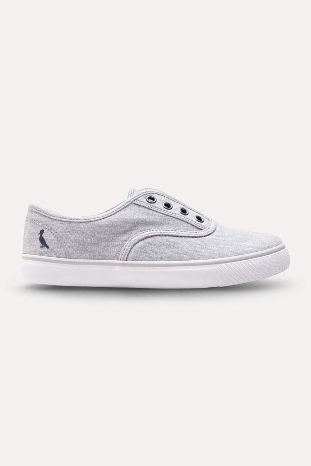 O modelo RMI #185 em moletom possui tons de cinza mescla e não tem cadarço, que dá maior praticidade na hora de calçar.