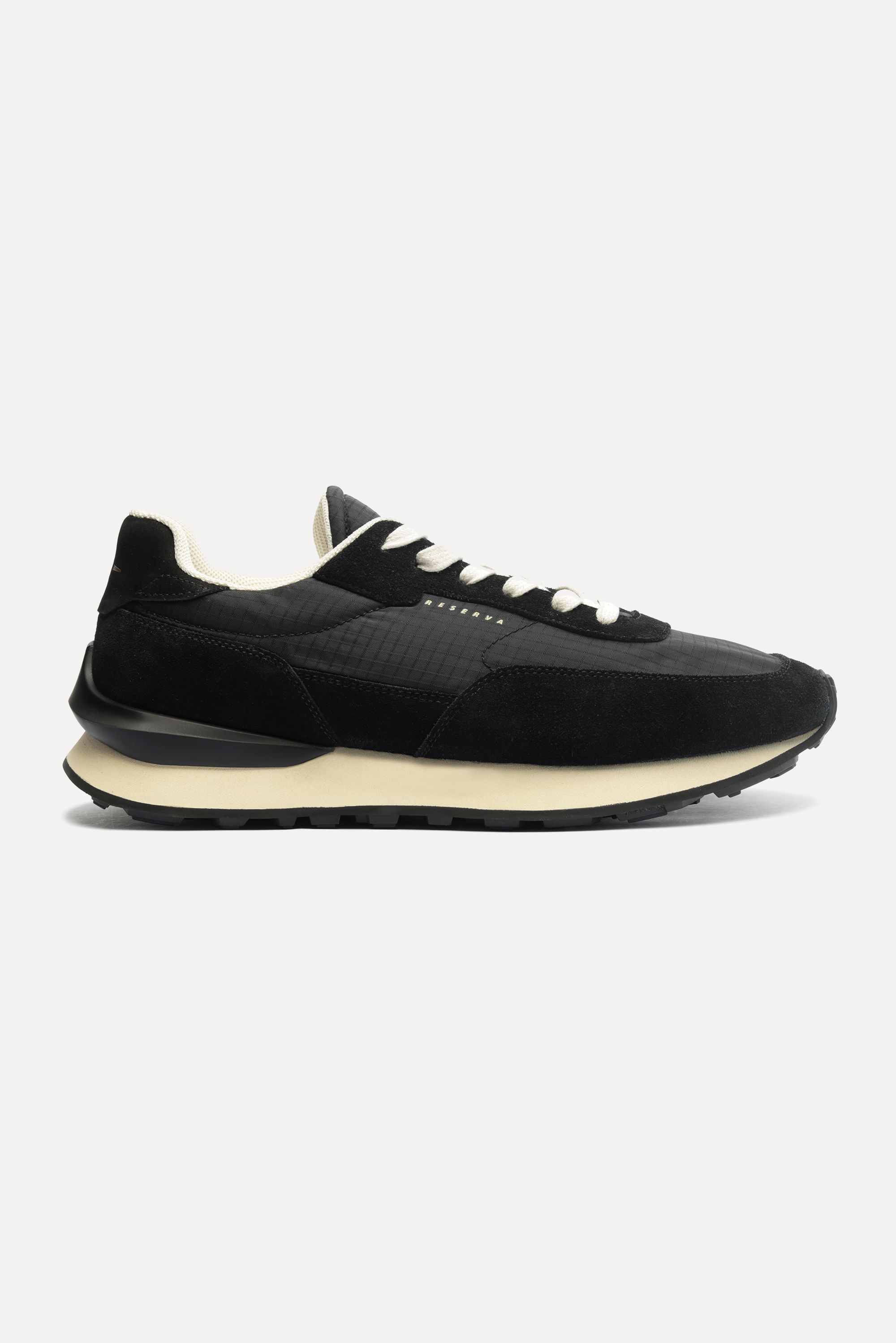 O Tênis Jogg chegou com um visual diferente de todos os outros tês que já criamos. Uma silhueta de tenis jogging bem retrô com cabedal de tecido nylon ripstop e detalhes de biqueira, vista e traseira em couro camurça. Sua sola de borracha é composta por três partes, que se unem para dar maior conforto e resistência. Sua entressola de EVA, já famosa por aqui, proporciona leveza e maciez, e o estabilizador de TPU injetado proporciona maior estabilidade para o caminhar. Seu cadarço de algodão passa um visual mais nobre. As assinaturas ficam por conta da escrita Reserva lateral, na lingueta e no estabilizador personalizado. Comprando esta peça, você viabiliza cinco pratos de comida através do nosso Programa 1P5P. Tênis produzido eticamente no Brasil.