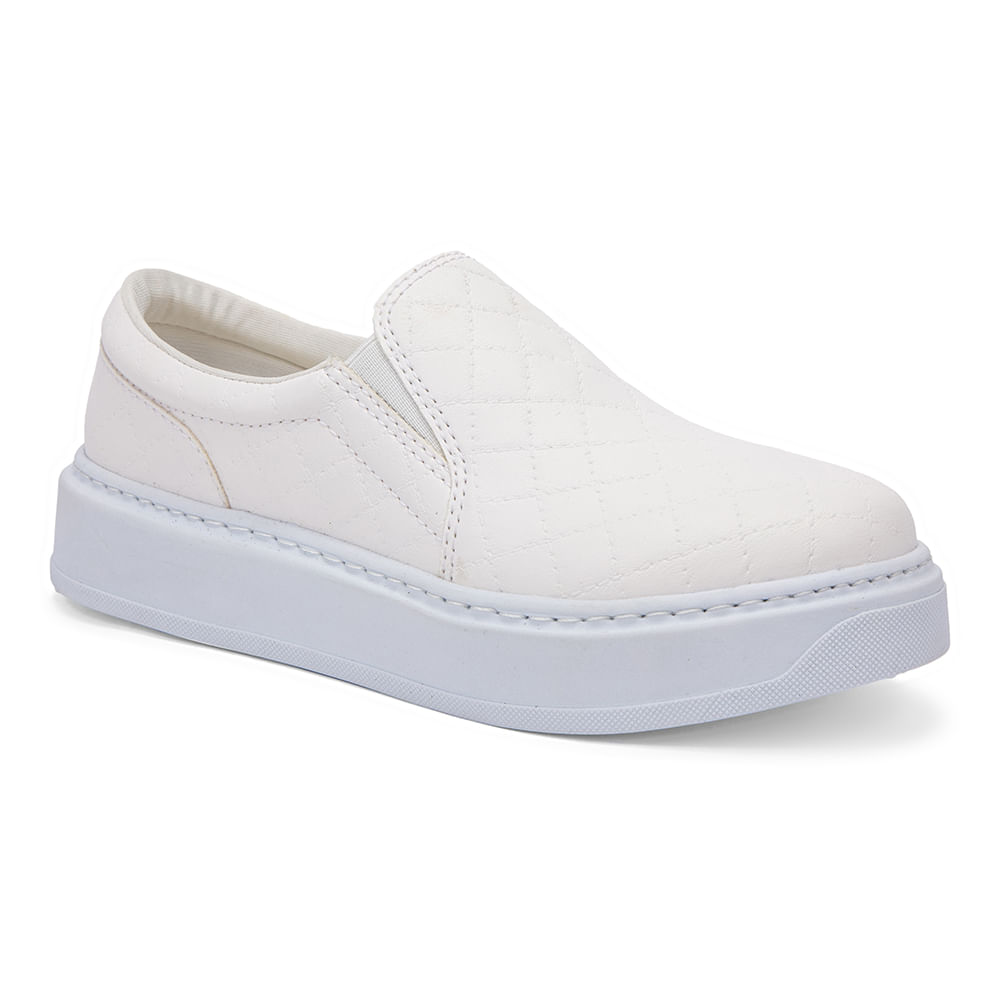 O Tênis Slip on Flatform traz muito conforto e praticidade para o seu dia a dia, ele pode ser usado tanto em um office look quanto em looks mais casuais, para você que gosta do conforto do tênis com estilo o tênis slip on flatform é perfeito para compor suas produções.<br>O Tênis Slip on Flatform pode ser usado com calça skinny tanto no jeans ou não essa é uma combinação perfeita, com saias rodadas ou mais justas você tem um look com mais personalidade opte por pelos comprimentos mais curtos ou acima do joelho para não encurtar a silhueta.<br>Esse modelo de tênis surgiu entre os anos de 1970 e 1980 e foi febre entre os skatistas por não ter cadarço e ficar sempre firme nos pés.<br><br>.<br>Produto: Tênis Slip On Flatform Branco<br>Código :11078274VBRA<br>Categoria: Tênis<br>Tipo de Salto: Sem salto <br>Altura do Salto: 3,5 cm<br>Tipo de Bico: Redondo.<br>Material Externo: Sintético <br>Forma :Normal compre a numaração que costuma usar <br>Peso: 400 g<br>Cor: Branco<br>Gênero: Feminino.
