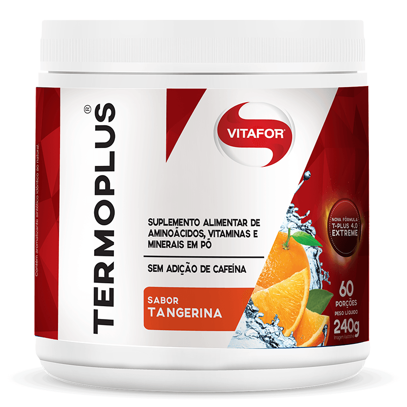 <p>A <strong>Termo Plus Tangerina Vitafor 240g</strong>, é um suplemento composto por aminoácidos, vitaminas e minerais.</p> <p>Não possui glúten, lactose, açúcares e corantes artificiais.</p> Sugestão de Consumo: <p>Dissolva uma porção (4g) em 300ml de água ou na bebida de sua preferência. Ingira uma hora antes do exercício físico, ou segundo as recomendações de um profissional da área da saúde.</p> <p>Este suplemento deve ser ingerido apenas por adultos (a partir de 19 anos).</p> Alergênicos: <p>Contém fenilalanina.</p> Motivos para escolher o produto: <ul> <li> <p>Não contém Glúten</p> </li> <li> <p>Livre de corantes artificiais</p> </li> <li> <p>Sem adição de açúcares</p> </li> <li> <p>Livre de sódio</p> </li> <li> <p>Sem gordura trans</p> </li> </ul> Sobre a marca: <p>A <strong>Vitafor</strong> é uma marca nacional que está no mercado há mais de 10 anos. Tem como objetivo fabricar e desenvolver suplementos alimentares com padrão de alta qualidade e eficácia. Através de seus produtos, a <strong>Vitafor </strong>oferece confiança e eficácia nos produtos para complementar as necessidades nutricionais daqueles que se preocupam com a saúde, desempenho e bem-estar.</p>