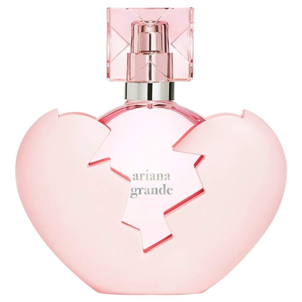 Otimisticamente franco. Brincalhão mas legal. Thank U Next Eau de Parfum de Ariana Grande é a fragrância definitiva para seguir em frente e olhar para cima. Notas suculentas de pêra branca cintilante e framboesa selvagem que suavizam com um coração de coco cremoso e delicadas pétalas de rosa rosa. O almíscar aveludado divino infunde o clássico atrevimento de Ari, enquanto o açúcar macaroon adiciona feminilidade divertida. Cheio de atitude, cheio de doçura.<br /> <br /> Família de fragrâncias: Floral<br /> Tipo de aroma: frutado e doce<br /> Notas:<br /> <br /> Topo: Pera Branca, Framboesa Selvagem.<br /> Meio: Creme de coco, Pétalas de Rosa rosa.<br /> Base: Açúcar Macaroon, Almíscar Veludo.