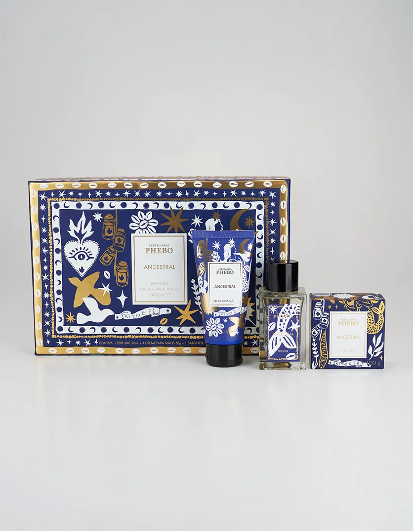 Ancestral é um mergulho nas tradições brasileiras, que atravessam diferentes gerações e criam memórias afetivas e sensoriais repletas de simbologias. A fragrância materializa as raízes brasileiras e celebra a lavanda que, há várias décadas, faz parte do cotidiano das pessoas. Um kit completo na fragrância Ancestral com perfume, creme mãos e sabonete em barra! O perfume passa pelo processo de maceração, prática feita por um seleto grupo de perfumarias no mundo, que garante mais harmonização e amadurecimento das notas olfativas. Ideal para hidratação e proteção, o creme para mãos possui 96% de ingredientes de origem natural, é formulado com óleo de amêndoa doce, manteiga de karité e PCA-Na, ativos que hidratam, nutrem deixam as mãos macias e sedosas. Os sabonetes em barra são formulados com base vegetal, manteiga de murumuru e óleo de coco, ativos que hidratam a pele. Além disso, ele limpa suavemente, promove maciez à pele e deixa perfumada por mais tempo. A embalagem, rica em símbolos variados, foi desenvolvida para celebrar o sincretismo cultural e a conexão com a ancestralidade brasileira. Vegano. Livre de corantes e parabenos. Conteúdo: 1x perfume 50ml; 1x creme mãos 50g; 1x sabonete em barra 100g
