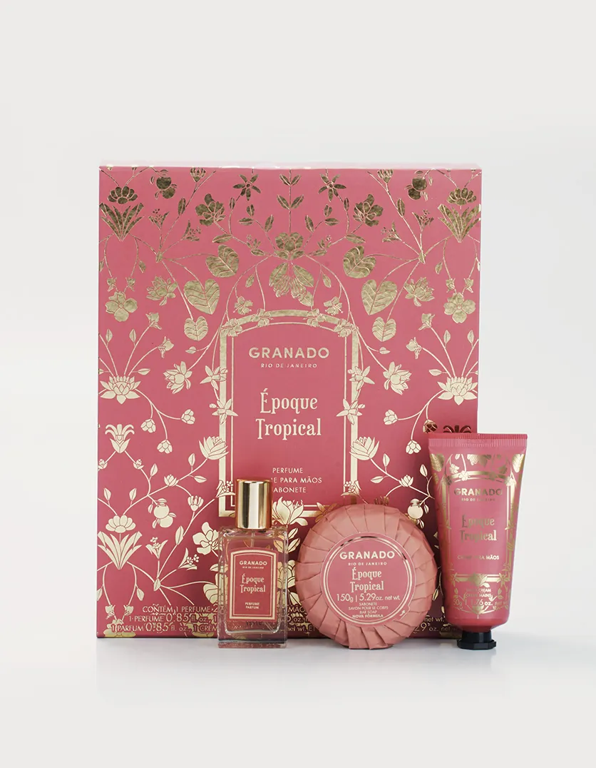 Époque Tropical é a união singular da clássica perfumaria francesa com a irreverência brasileira. Seu perfume marcante explora o lado envolvente das notas amadeiradas de sândalo e guaiaco e equilibra essa intensidade com o cítrico intenso da mandarina e do caju.Best-seller e sucesso nas redes sociais, a fragrância é protagonista de uma coleção exclusiva para o seu verão tropical!O Kit Perfumado possui itens essenciais para se manter perfumado o dia todo! Ele tem um perfume em miniatura, um creme para mãos e um sabonete em barra cremoso da fragrância Époque Tropical, ideais para serem reaplicados sempre que quiser. Com 82% de ingredientes de origem natural, o perfume passa pelo processo de maceração, prática feita por um seleto grupo de perfumarias no mundo, que garante maior harmonização e amadurecimento das notas olfativas. O sabonete em barra cremoso tem 77% de ingredientes de origem natural e é formulado com base vegetal, glicerina vegetal, manteiga de murumuru e óleo de coco, ativos que auxiliam na hidratação da pele. Além disso, limpa suavemente, promove maciez à pele e deixa a pele perfumada por mais tempo.O creme para mãos, com 92% de ingredientes de origem natural, é formulado com óleo de amêndoa doce, óleo de semente de uva e óleo de açaí, que hidratam, nutrem deixam as mãos macias e sedosas. Os produtos acompanham uma caixa ilustrada com a estampa de Époque Tropical, podendo ser usada como uma caixa organizadora, além de ser um presente ideal para quem ama se perfumar. A embalagem segue o pantone metalizado da fragrância e a estampa em hot stamping. Não possui parabenos e corantes em sua formulação. Produto não testado em animais. Conteúdo: 1 perfume 25ml, 1 creme mãos 50g e 1 sabonete barra 150g.