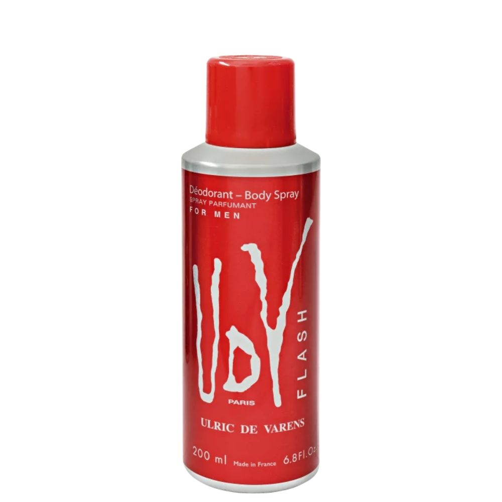Ulric de Varens UDV Flash<br /> Desodorante masculino fougère oriental. UDV Flash Ulric de Varens Desodorante é aquático e quente e desodoriza com a fragrância do perfume. Perfeito para o homem moderno sedutor, ativo e que sempre corre atrás dos seus objetivos.