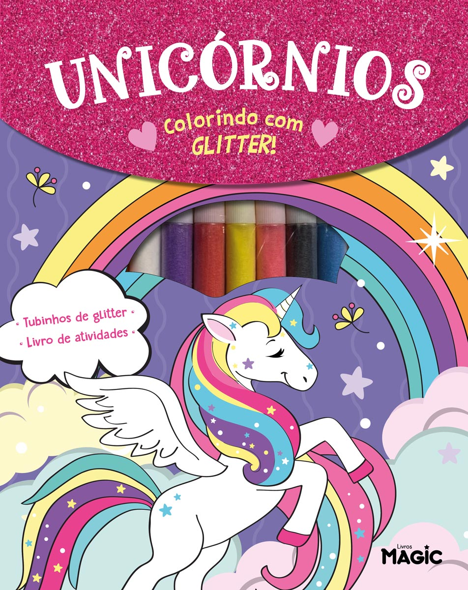 Os Unicórnio são seres fantásticos que vivem em um mundo encantado e colorido feito especialmente para eles! Use os tubinhos de glitter para completar os desenhos dessas criaturas e divirta-se fazendo as atividades do livro!