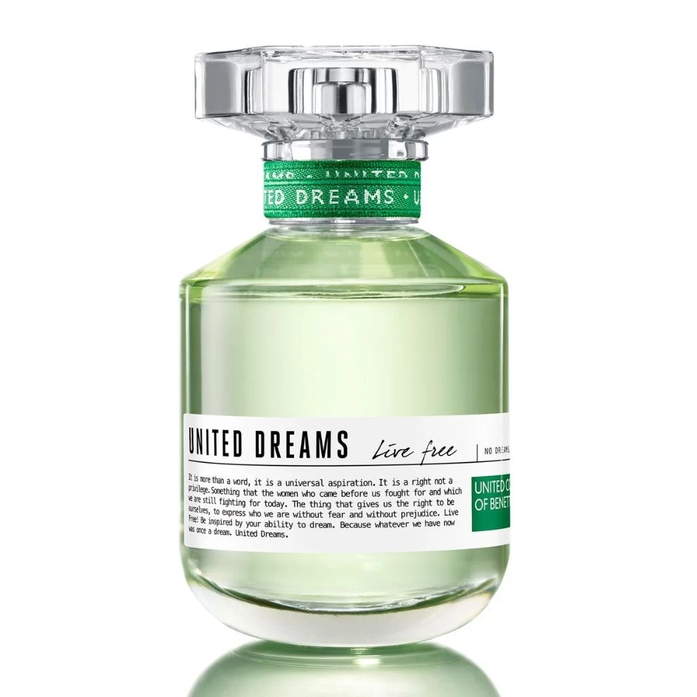 United Dreams Live Free<br /> Não existe palavras para descrever a sensação de liberdade, O perfume feminino United Dreams Life Free da Benetton traz à tona esse sentimento. Liberte-se, viva com liberdade e se expresse sem medos nem preconceito.<br /> <br /> Experimente o perfume feminino United Dreams Life Free, uma fragrância refrescante e marcante, um convite à liberdade.<br /> <br /> Viva com liberdade!<br /> É mais do que uma expressão, é uma aspiração universal. Um direito, não um privilégio de poucos. Algo pelo qual as mulheres que vieram antes de nós lutaram hoje. Benetton United Dreams Life Free é uma fragrância que nos dá a oportunidade de sermos nós mesmo, sem medo ou preconceito. Viva Livre! Deixe-se inspirar pela capacidade de sonhar, porque tudo o que temos agora já foi antes apenas um sonho.<br /> <br /> Os acordes de Benetton United Dreams Live Free são leves e perfeitos para iluminar os seus dias.<br /> <br /> Fragrância:<br /> Perfume feminino floral frutal enérgico e refrescante. As notas de topo são, Cítrica, Frutada, Chá, Bergamota, Yuzu, Maçã Verde, Acorde “Folhas de Chá Verde”. Já as notas de coração são compostas por Floral, Notas de especiaria, Ciclame-da-pérsia, Flor de Laranjeira, Cardamomo e Gengibre. Por fim as notas de fundo são Madeira, Âmbar, Musk, Cedro, Madeira de Guáiaco, Acorde “Âmbar”, Musk.