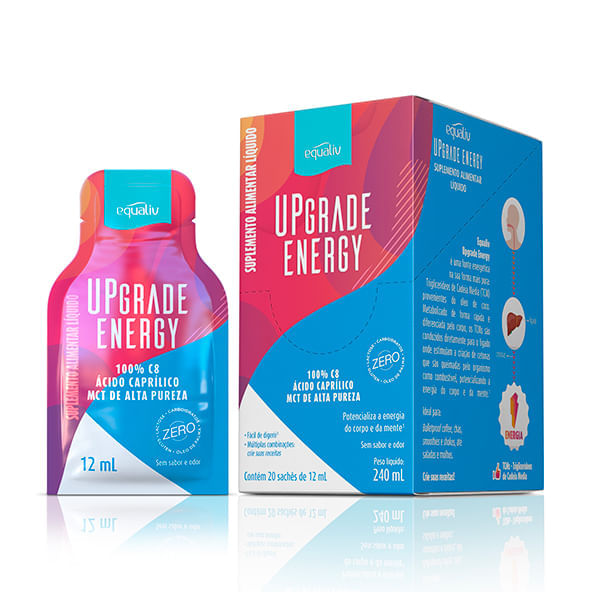<p>"O Upgrade Energy, da Equaliv, 20 sachês, é um suplemento alimentar que fornece ácido caprílico de alta pureza proveniente TCM (triglicerídeos de cadeia média) extraído da parte branca do coco, ainda fresco, sem a utilização de aditivos químidos.</p> <p> </p> <p>Suplemento líquido sem sabor ou odor. Não possui adição de óleo de palma.</p> <p> </p> <p>Recomendação de consumo:</p> <p> </p> <p>Consuma 1 sachê ao dia em qualquer momento do dia ou conforme recomendação do médico ou nutricionista.</p> <p> </p> <p>Dicas:</p> <p> </p> <p>Experimente adicionar no café, bulletproffcoffe, chás, smoothies, shakes até molhos e saladas.</p> <p> </p> <p>Não aqueça acima de 160º C.</p> <p> </p> <p>Por que escolher este produto?</p> <p>Low Carb</p> <p>Sem açúcar</p> <p>Extração proveniente de plantação sustentável do coco</p> <p>Sabor e aroma neutro</p> <p>Fácil de digerir</p> <p>Vegano</p> <p>Sem glúten</p> <p>Sem lactose</p> <p>Livre de organismos geneticamente modificados</p> <p>Sobre a marca:</p> <p> </p> <p>A Equaliv é uma linha supermoderna da Athalia, uma indústria farmacêutica com bastante know how, já que seus profissionais atuaram e lideraram empresas de ponta na área. A linha Equaliv desenvolve produtos nutracêuticos pensados exclusivamente para quem está em busca do equilíbrio e do bem-estar, abrangendo diferentes consumidores e suas diferentes necessidades de suplementação."</p> <p> </p>