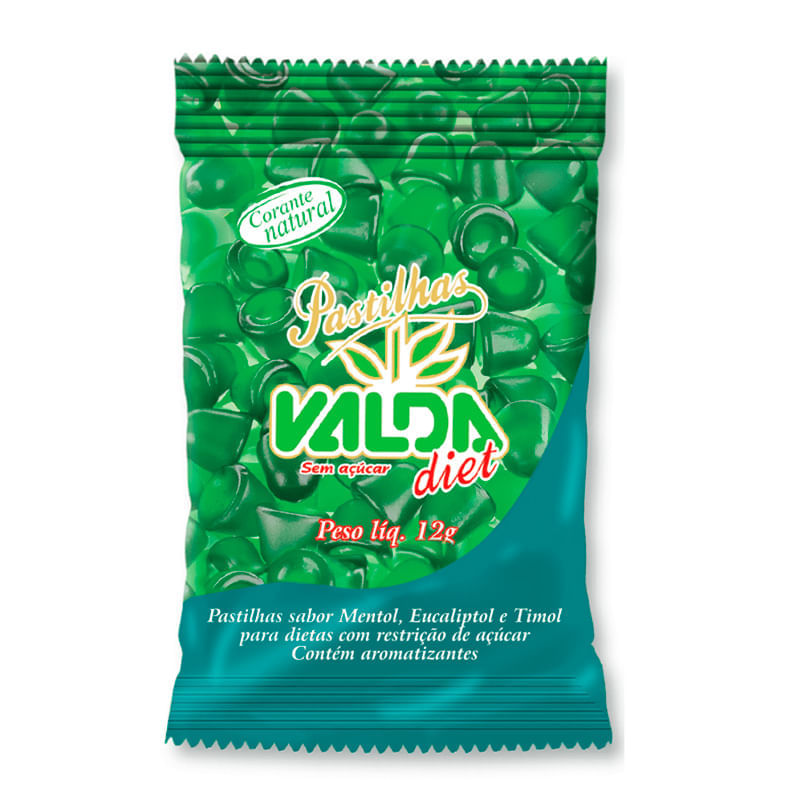 _x000D_ _x000D_ _x000D_ _x000D_ _x000D_ <p>A <strong>Valda Diet</strong>, da <strong>Valda</strong>, 12 g, traz o sabor irreconhecível de menta eucalipto sem adição de açúcar, mantendo aquela sensação refrescante e hálito perfumado.</p>_x000D_ <p>Ideal para pessoas com restrição ao açúcar ou calorias, cada pastilha fornece apenas 1,8 kcal.</p>_x000D_ Benefícios:_x000D_ <ul>_x000D_ <li>Sem adição de açúcar</li>_x000D_ <li>Sem glúten</li>_x000D_ <li>Livre de corantes artificiais</li>_x000D_ <li>Sabor único</li>_x000D_ <li>Refrescante</li>_x000D_ <li>Fragrância duradoura</li>_x000D_ </ul>_x000D_ A marca: _x000D_ <p>A Valda possui mais de 100 anos de história, iniciando com as patilhas contendo substâncias antissépticas. Atualmente, sua fábrica conta com equipamentos modernos necessários ao desenvolvimento e a pesquisa de novos produtos, além de uma equipe de químicos e farmacêuticos, para garantir um controle de qualidade de nível internacional.</p>_x000D_ _x000D_