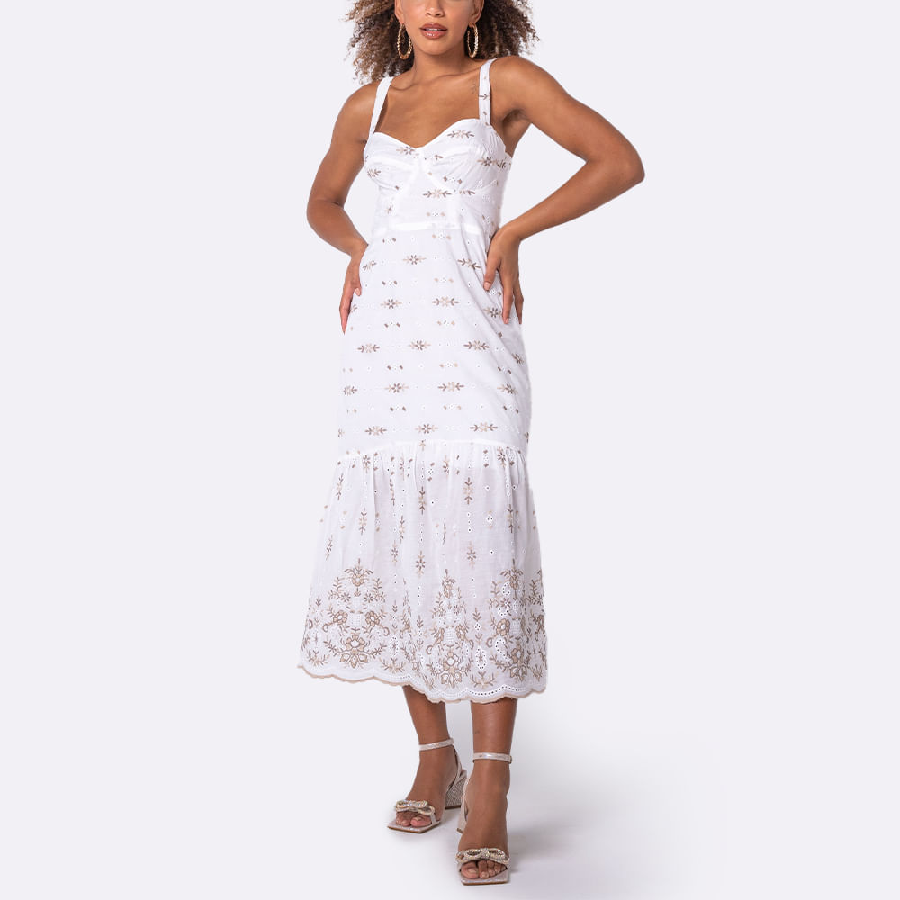Vestido corpete bordado, é confeccionado no laise bordado com caimento fluido; O modelo conta com alcinhas, corpo estruturado, estilo corpete que modelam a silhueta, e saia ampla com lindos bordados na sua extensão; A versatilidade dessa peça é seu diferencial, é uma ótima opção para um almoço com as amigas, e para um casamento a noite; O vestido corpete bordado é perfeito para combinar com sandália de salto ou uma rasteira, arrematando com acessórios alegres e também sofisticados; O vestido corpete bordado é uma das peças favoritas das mulheres antenadas na moda, que adoram sempre levar feminilidade ao visual; Aposte no vestido corpete bordado para uma produção ainda mais romântica e charmosa; <br><br><br>.<br><br>Produto: Vestido Corpete Bordado Nude<br>Categoria: Vestido<br>Cor: Nude <br>Manga: Sem Manga<br>Gola: Gola em V<br>Tecido: Laise Bordado<br>Composição: 80% algodao, 20% poliester<br>Peso: 300 g<br>Gênero: Feminino<br>Marca: Vértice<br><br><br>Medidas.<br><br><br>P - Busto até 90 cm l Cintura até 71 cm l Quadril até 99 Cm.<br>M - Busto até 96 cm l Cintura até 77 cm l Quadril até 102 cm.<br>G - Busto até 102 cm l Cintura 83 cm l Quadril 111 cm.<br>GG - Busto 108 cm l Cintura até 89 cm l Quadril até 117 cm.<br>EGG - Busto até 114 cm l Cintura até 95 cm l Quadril até 123 cm.