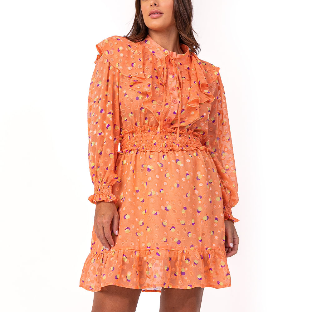 Vestido feminino confeccionado em tecido de poliéster e caimento fluido; Modelo conta com comprimento curto, mangas longas com elástico no punho, babados aplicados e botões frontais; Estampa corrida colorida, que traz um toque alegre á peça; O vestido feminino curto é ideal para ser usado com sandálias, sapatos baixos e botas delicadas; Para um visual fashionista, aposte em uma bota de cano curto e arremate com os acessórios pequenos e delicados; Os babados em vestidos se tornaram uma grande tendência e todas as amantes de moda estão adorando usar; Aposte no vestido com babados para um visual fashionista e super atual; <br><br>.<br><br><br>Produto: Vestido Curto Babados Coral<br>Categoria: Vestidos<br>Cor: Coral <br>Manga: Manga Longa<br>Gola: Gola Camisa<br>Tecido: Poliester / Tecido Fluido <br>Composição : 100% poliester<br>Peso :200 g<br>Gênero: Feminino<br>Marca: Vértice<br>.<br><br><br><br>Medidas.<br><br>P - Busto até 90 cm l Cintura até 71 cm l Quadril até 99 Cm.<br>M - Busto até 96 cm l Cintura até 77 cm l Quadril até 102 cm.<br>G - Busto até 102 cm l Cintura 83 cm l Quadril 111 cm.<br>GG - Busto 108 cm l Cintura até 89 cm l Quadril até 117 cm.<br>EGG - Busto até 114 cm l Cintura até 95 cm l Quadril até 123 cm.<br><br><br><br><br><br><br><br><br><br><br><br><br><br><br><br><br><br><br><br><br><br><br><br><br><br><br><br><br><br><br><br><br><br> <br><br><br><br><br><br><br><br><br><br><br><br><br><br><br><br><br>