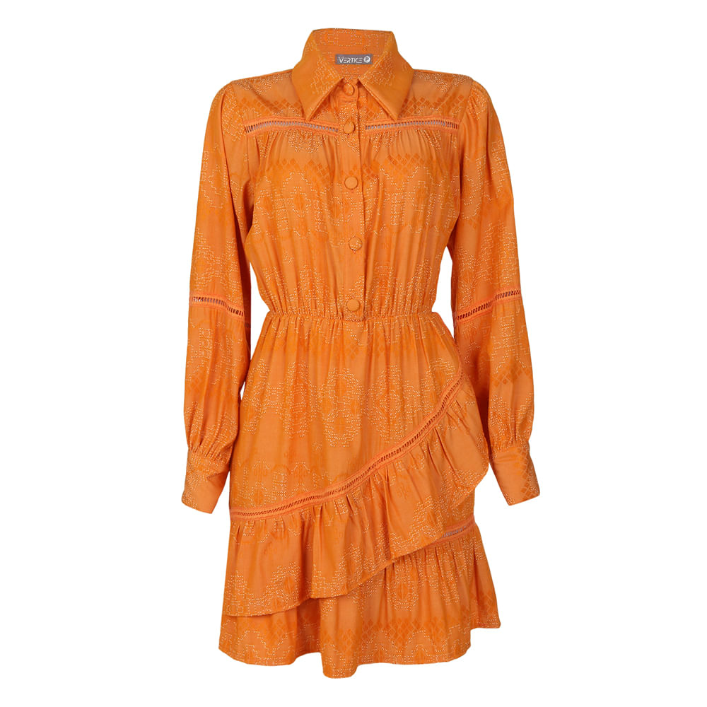 O Vestido Curto com Manga Laranja com botões babado na saia tecido leve com caimento perfeito muito confortável ,para looks despojados ou office look ,ele vai dar um Up nas suas produções<br>O Vestido Curto com Manga Longa para quem gosta de um look mais um pouco mais despojado, com a nossa bota de montaria cano alto ela fica perfeita , até mesmo com tênis você monta um look muito estiloso e com personalidade, um look perfeito para um happy hour, passeio no parque, shopping ou office look seja qual for sua escolha você vai arrasar seja qual for sua escolha <br>O vestido não existe relatos de sua real origem, antigamente os homens e mulheres usavam túnicas, uma peça que era muito parecida com um vestido, algum tempo depois ele foi se reajustando com o passar do tempo e se tornou a vestimenta que conhecemos hoje que é sinônimo de poder e beleza<br>.<br>Produto: Vestido Curto com Manga<br>Código: VES2215LAR<br>Categoria: Vestidos<br>Tecido: Viscose<br>Composição : Poliéster 35% Viscose <br>Gola : Camisa<br>Cor: Laranja <br>Peso: 350 g<br>Comprimento :Curto<br>Manga: Curta<br>Gênero: Feminino<br>Marca: Vértice<br><br>Medidas<br>P - Busto até 90 cm l Cintura até 71 cm l Quadril até 99 Cm<br>M - Busto até 96 cm l Cintura até 77 cm l Quadril até 102 cm<br>G - Busto até 102 cm l Cintura 83 cm l Quadril 111 cm<br>GG - Busto 108 cm l Cintura até 89 cm l Quadril até 117 cm<br>EGG - Busto até 114 cm l Cintura até 95 cm l Quadril até 123 cm<br>
