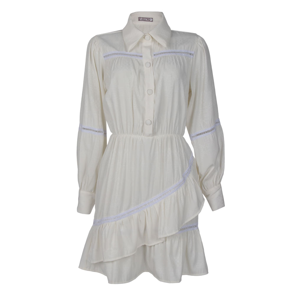 O Vestido Curto com Manga com botões babado na saia tecido leve com caimento perfeito muito confortável ,para looks despojados ou office look ,ele vai dar um Up nas suas produções.<br>O Vestido Curto com Manga Longa para quem gosta de um look mais um pouco mais despojado, com a nossa bota de montaria cano alto ela fica perfeita , até mesmo com tênis você monta um look muito estiloso e com personalidade, um look perfeito para um happy hour, passeio no parque, shopping ou office look seja qual for sua escolha você vai arrasar seja qual for sua escolha .<br>O vestido não existe relatos de sua real origem, antigamente os homens e mulheres usavam túnicas, uma peça que era muito parecida com um vestido, algum tempo depois ele foi se reajustando com o passar do tempo e se tornou a vestimenta que conhecemos hoje que é sinônimo de poder e beleza.<br><br><br>Produto: Vestido Curto com Manga<br>Código: VES2215OFF<br>Categoria: Vestidos<br>Tecido: Viscose<br>Composição : Poliéster 35% Viscose <br>Gola : Camisa<br>Cor: Off White <br>Peso: 350 g<br>Comprimento :Curto<br>Manga: Curta<br>Gênero: Feminino<br>Marca: Vértice<br>Medidas<br>P - Busto até 90 cm l Cintura até 71 cm l Quadril até 99 Cm<br>M - Busto até 96 cm l Cintura até 77 cm l Quadril até 102 cm<br>G - Busto até 102 cm l Cintura 83 cm l Quadril 111 cm<br>GG - Busto 108 cm l Cintura até 89 cm l Quadril até 117 cm<br>EGG - Busto até 114 cm l Cintura até 95 cm l Quadril até 123 cm<br>