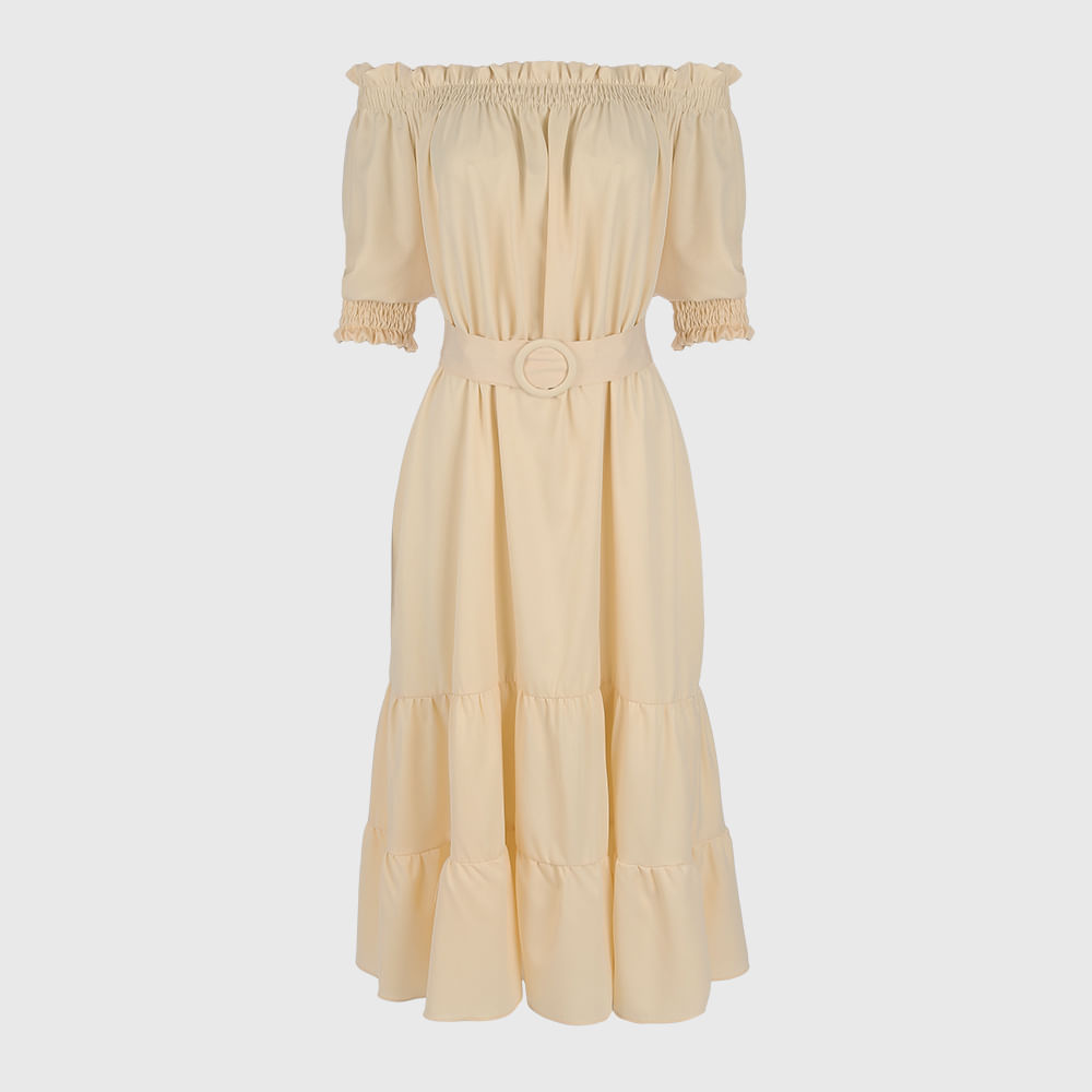 Na Vértice, você encontra vestidos únicos que te acompanham do casual ao mais sofisticado.<br>Seja no comprimento longo, midi ou curto, temos o vestido perfeito para você ficar ainda mais linda, em qualquer ocasião.<br>.<br>.<br>Produto: Vestido Feminino Ombro a Ombro Areia<br>Código: VES2018ARE.<br>Categoria: Vestido.<br>Cor: Areia.<br>Comprimento: Longo.<br>Tecido : Poliéster<br>Manga: Longa.<br>Gola: Ombro a Ombro.<br>Gênero: Feminino.<br>Marca: Vértice.. Medidas. P - Busto até 90 cm l Cintura até 71 cm l Quadril até 99 Cm. M - Busto até 96 cm l Cintura até 77 cm l Quadril até 102 cm. G - Busto até 102 cm l Cintura 83 cm l Quadril 111 cm. GG - Busto 108 cm l Cintura até 89 cm l Quadril até 117 cm. EGG - Busto até 114 cm l Cintura até 95 cm l Quadril até 123 cm.