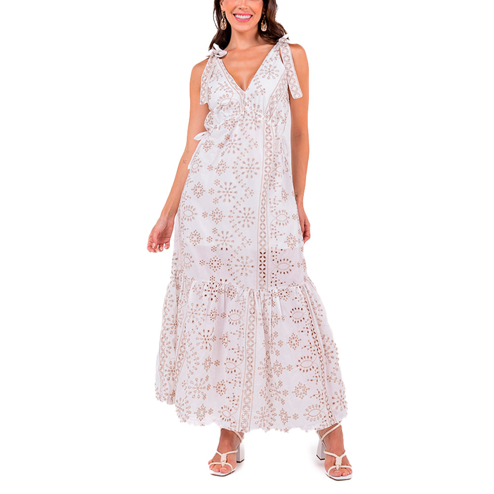 Vestido feminino confeccionada em laise, um tecido com bordados florais; O modelo possui alças médias com amarração nos ombros em formato de laço, decote em V e barrado aplicado com pregas; O bordado da laise traz feminilidade ao visual; O vestido feminino em laise é a aposta ideal para os dias quentes, especialmente os estampados e fluidos; Invista com rasteira de tramas coloridas e arremate com um bolsa tiracolo; Os vestidos em laise são as peças únicas que trazem conforto e um toque fresh na hora de montar uma produção de moda fashionista, aposte!<br><br><br><br>.<br><br>Produto: Vestido Laise Laço Offwhite<br>Categoria: Vestidos<br>Cor: Offwhite com bordados nude<br>Manga: Sem Manga <br>Gola: Gola em V<br>Tecido: Laise<br>Composição: 100 % algodao<br>Peso :200 g<br>Gênero: Feminino<br>Marca: Vértice<br>.<br><br><br><br><br>Medidas.<br><br><br>P - Busto até 90 cm l Cintura até 71 cm l Quadril até 99 Cm.<br>M - Busto até 96 cm l Cintura até 77 cm l Quadril até 102 cm.<br>G - Busto até 102 cm l Cintura 83 cm l Quadril 111 cm.<br>GG - Busto 108 cm l Cintura até 89 cm l Quadril até 117 cm.<br>EGG - Busto até 114 cm l Cintura até 95 cm l Quadril até 123 cm.<br><br><br><br><br><br><br><br><br><br><br><br><br><br><br><br><br><br><br><br><br><br><br> <br><br><br><br><br><br><br><br><br><br><br><br><br><br><br><br>