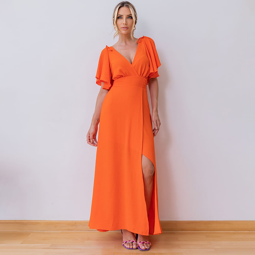 O vestido longo transpassado possui decote transpassado, mangas amplas com recorte, cacinho nas mangas, franzido no busto para ajustar melhor ao corpo, zíper traseiro, botões forrados na cintura, fenda frontal; O vestido transpassado é uma peça versátil e elegante, que pode ser usada de várias maneiras; Aqui estão algumas dicas sobre como usar um vestido transpassado: Use acessórios que complementem o seu vestido; Um colar longo, brincos grandes, uma bolsa de mão podem dar um toque especial ao seu look; Escolha o sapato certo: O tipo de sapato que você usa com o vestido transpassado pode agregar muito no visual; Saltos altos são uma escolha clássica, mas sandálias ou tênis também podem ser usados ??para uma aparência mais casual; Experimente camadas: Se você está procurando uma maneira de dar ao seu vestido transpassado um visual diferente, experimente adicionando uma jaqueta, um blazer ou um suéter por cima; Escolha a ocasião certa: O vestido transpassado é uma peça versátil que pode ser usada para várias ocasiões, como um encontro casual, uma festa de fim de semana, um evento formal ou um casamento; Seja confiante: Independentemente de como você escolha usar o vestido transpassado, lembre-se de ser confiante e usar o vestido com orgulho; Afinal, a confiança é a chave para qualquer look ficar bem; O vestido longo transpassado é uma peça clássica e versátil que nunca sai de moda; <br><br>.<br><br>Produto: Vestido Longo Transpassado Coral<br>Categoria: Vestidos<br>Cor: Coral<br>Manga: Sem Manga<br>Gola: Gola em V<br>Tecido: Poliester<br>Composição: 97% Poliester / 3% Elastano<br>Peso : 300g<br>Gênero: Feminino<br>Marca: Vértice<br><br><br>Medidas.<br><br>P - Busto até 90 cm l Cintura até 71 cm l Quadril até 99 Cm.<br>M - Busto até 96 cm l Cintura até 77 cm l Quadril até 102 cm.<br>G - Busto até 102 cm l Cintura 83 cm l Quadril 111 cm.<br>GG - Busto 108 cm l Cintura até 89 cm l Quadril até 117 cm.<br>EGG - Busto até 114 cm l Cintura até 95 cm l Quadril até 123 cm.<br><br><br><br><br>