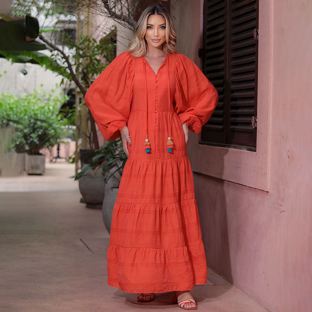 Um vestido longo amplo com mangas é uma peça de roupa elegante e versátil que combina comprimento e amplitude, criando uma aparência sofisticada; Ele geralmente possui um corte reto ou levemente evasê que começa na altura dos ombros e cai até os tornozelos ou um pouco acima; As mangas amplas conferem um toque de drama e estilo à peça, tornando-a uma opção perfeita para uma variedade de graças; um vestido longo manga pode ser complementado com acessórios elegantes; Escolha um cinto fino para marcar a cintura; A moda está sempre evoluindo, e os vestidos longos amplos com mangas têm permanente uma escolha atemporal nos últimos anos; Lembre-se de que a moda é uma forma de expressão pessoal, e o mais importante é que você se sinta confortável e confiante com o seu estilo; Experimente diferentes variações desse vestido e encontre a combinação que melhor se adapta ao seu gosto e personalidade; <br>.<br>Produto: Vestido Longuete Amplo Manga Longa Coral <br>Categoria: Vestidos<br>Cor: Coral <br>Manga: Manga Longa <br>Gola: Gola V<br>Tecido: ST JOHN<br>Composição: 80% Viscose /20% Poliamida <br>Peso : 300g<br>Gênero: Feminino<br>Marca: Vértice<br>.<br>Medidas da Modelo<br>Altura: 1,70 cm<br>Busto: 89 cm<br>Cintura: 65 cm<br>Quadril: 94 cm<br>A MODELO VESTE O TAMANHO P<br>.<br>Medidas.<br>P - Busto até 90 cm l Cintura até 71 cm l Quadril até 99 Cm.<br>M - Busto até 96 cm l Cintura até 77 cm l Quadril até 102 cm.<br>G - Busto até 102 cm l Cintura 83 cm l Quadril 111 cm.<br>GG - Busto 108 cm l Cintura até 89 cm l Quadril até 117 cm.<br>EGG - Busto até 114 cm l Cintura até 95 cm l Quadril até 123 cm.