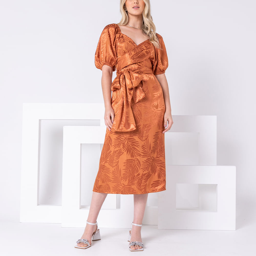 Vestido feminino confeccionado em tecido de viscose acetinada e cetim estampado; Modelagem transpassada com caimento leve e detalhe de amarração lateral; Modelo conta com decote em V, mangas curtas bufantes e estampa corrida com temática tropical; <br>O vestido transpassado feminino é perfeito para uma produção cheia de autenticidade e feminilidade; Para um visual que combine ainda mais com o vestido, aposte com sandálias em tons neutros e arremate com acessórios delicados;Queridinho das brasileiras amantes de moda, o vestido transpassado é ideal para marcar a silhueta e trazer leveza ao seu look, aposte!<br><br>.<br><br>Produto: Vestido Midi Transpassado Cobre <br>Código: VES2225COB<br>Categoria: Vestido<br>Cor: Cobre <br>Manga: Curta<br>Gola: Gola V<br>Tecido: Cetim Estampado<br>Composição: 55,8 % poliester / 44,2% viscose<br>Peso: 300 g<br>Gênero: Feminino<br>Marca: Vértice<br>.<br><br><br>Medidas.<br><br><br>P - Busto até 90 cm l Cintura até 71 cm l Quadril até 99 Cm.<br>M - Busto até 96 cm l Cintura até 77 cm l Quadril até 102 cm.<br>G - Busto até 102 cm l Cintura 83 cm l Quadril 111 cm.<br>GG - Busto 108 cm l Cintura até 89 cm l Quadril até 117 cm.<br>EGG - Busto até 114 cm l Cintura até 95 cm l Quadril até 123 cm.<br><br><br><br><br><br><br><br><br><br><br><br><br><br><br><br><br><br> <br><br><br><br><br><br><br><br><br><br><br><br><br><br><br><br><br><br><br><br><br><br><br><br><br><br><br><br><br><br><br><br><br><br><br><br>