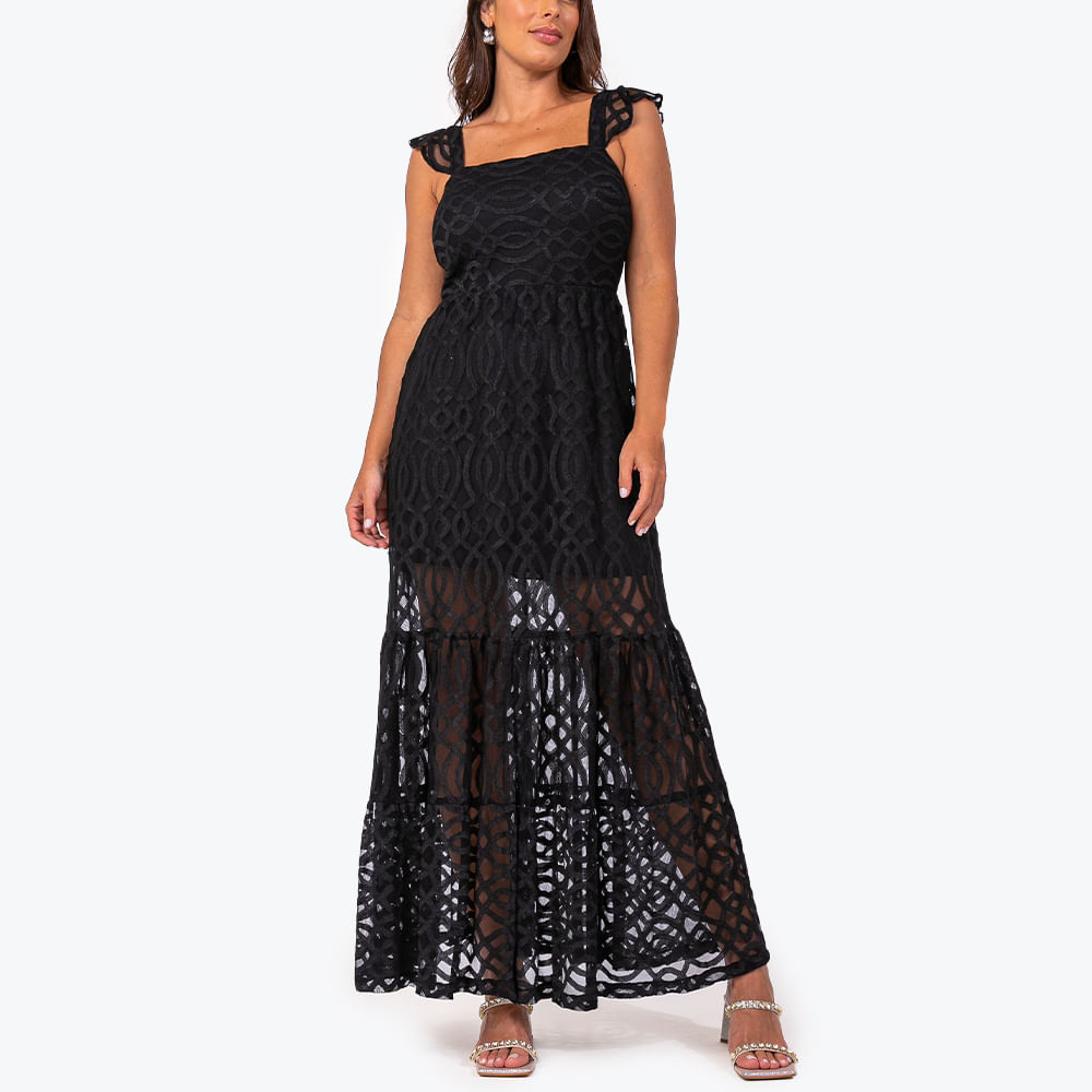 Vestido feminino confeccionado em tecido rendado trabalhado e forro interno branco; O modelo conta com comprimento longo, decote quadrado e mangas curtas com rendas aplicadas; Detalhe de cintura marcada, trazendo feminilidade a peça e saia com barrado em recortes; O modelo de vestido longo ideal para quem busca um visual leve e bonito; O vestido feminino rendado é ideal para quem busca praticidade e um visual fluido, em uma só peça; Para um look casual, aposte com sandálias de fibras naturais ou rasteiras; Enquanto para os visuais com toque elegante, aposte com sandálias metalizadas de salto e tiras finas; Os vestidos femininos rendados são a principal aposta das fashionistas para um look moderno, com toque de naturalidade e a cara do verão; Aposte!<br><br><br>.<br><br>Produto: Vestido Renda Manguinhas Preto<br>Categoria: Vestido<br>Cor: Preto<br>Manga: Sem Manga<br>Gola: Gola Reta <br>Tecido: Renda <br>Composição: 10% elastano 50% poliamida 40% algodao<br>Peso: 300 g<br>Gênero: Feminino<br>Marca: Vértice<br><br><br>Medidas.<br><br><br>P - Busto até 90 cm l Cintura até 71 cm l Quadril até 99 Cm.<br>M - Busto até 96 cm l Cintura até 77 cm l Quadril até 102 cm.<br>G - Busto até 102 cm l Cintura 83 cm l Quadril 111 cm.<br>GG - Busto 108 cm l Cintura até 89 cm l Quadril até 117 cm.<br>EGG - Busto até 114 cm l Cintura até 95 cm l Quadril até 123 cm.<br><br><br><br><br><br><br><br><br><br><br><br><br><br><br><br><br><br><br><br><br><br><br><br><br><br><br><br><br><br><br><br><br><br><br><br><br><br>