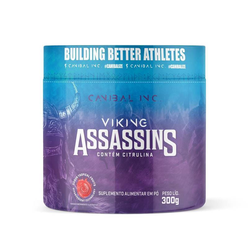 <p>O <strong>Viking Assassins</strong> sabor tropical fruit, da Canibal Inc, é um suplemento alimentar elaborado com um blend de ativos estimulantes, ideal para ser consumido pré-treino, nele contém arginina, beta alanina, tirosina, cafeína, taurina, entre outros ingredientes.</p>_x000D_ <h2><strong>Sugestão de consumo:</strong></h2>_x000D_ <p>Diluir 2 dosadores (10g) em 200ml de água e consumir 30ml a cada 2 horas, ou conforme orientação do médico ou nutricionista.</p>_x000D_ <h2><strong>Motivos para escolher o produto:</strong></h2>_x000D_ <ul>_x000D_ <li>_x000D_ <p>Rende cerca de 30 doses;</p>_x000D_ </li>_x000D_ <li>_x000D_ <p>Zero adição de açúcares;</p>_x000D_ </li>_x000D_ <li>_x000D_ <p>200mg de cafeína por dose;</p>_x000D_ </li>_x000D_ <li>_x000D_ <p>Rico em vitamina C, E e B6;</p>_x000D_ </li>_x000D_ <li>_x000D_ <p>Isento de glúten e lactose.</p>_x000D_ </li>_x000D_ </ul>_x000D_ <h2><strong>A Marca</strong></h2>_x000D_ <p>A Canibal Inc foi fundada no ano de 2017 com a missão de revolucionar o mercado de suplementos alimentares, a empresa trabalha com produtos focados em bem-estar, emagrecimento, ganho de força e aumento de massa muscular. Cada produto é desenvolvido com base em pesquisas e uso de matéria prima premium, trazendo ciência aliada a alta performance.</p>_x000D_ <p> </p>