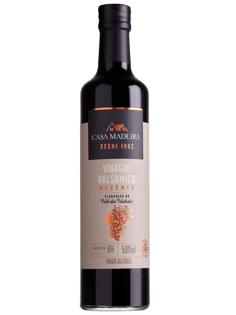 Você está comprando: VINAGRE BALSAMICO GOURMET CASA MADEIRA 500ML País de Origem: BRASILValidade: INDETERMINADASOBRE O PRODUTO:A consistência encorpada, aroma amadeirado e sabor levemente agridoce deste sofisticado balsâmico proporciona um sabor ímpar às saladas e antepastos. Sua versatilidade permite a criatividade do chef a fazer uma redução em fogo brando a ponto de caramelizar para utilização de modo mais sublime em carnes, legumes grelhados e sobremesas. Por ser feito a partir de uma fermentação natural, este vinagre pode conter uma borra, que ao longo do tempo se depositará no fundo da garrafa. Essa borra é formada por um conjunto de bactérias (as bactérias acéticas), e se chama "mãe do vinagre". Ela é a responsável por fazer com que o vinho se transforme em um vinagre de qualidade e de forma alguma é prejudicial, possibilitando o consumo do vinagre normalmente.<br /> <br /> CARACTERÍSTICAS<br /> <br /> TIPO<br /> Vinagre Gourmet<br /> <br /> TERROIR<br /> Vale Dos Vinhedos<br /> <br /> SABOR<br /> Balsâmico<br /> <br /> CONTEÚDO<br /> 500 mL<br /> <br /> HARMONIZAÇÃO<br /> Carnes, legumes grelhados e sobremesas.<br /> <br /> ACIDEZ<br /> 6%
