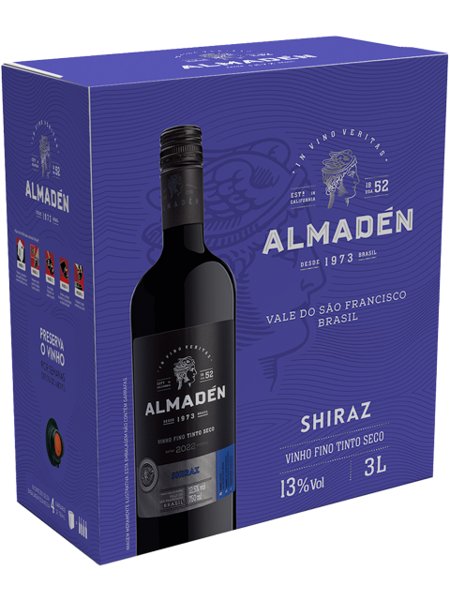 Você está comprando: VINHO ALMADEN SHIRAZ TINTO SECO BAG IN BOX 3LTSPaís de origem: BRASILValidade: IndeterminadaSOBRE O PRODUTO:<br /> <br /> Experimente o Vinho Almadén Shiraz e descubra o sabor suave e equilibrado deste vinho tinto brasileiro produzido pela Vinícola Miolo. Com aromas de frutas vermelhas e notas florais, este vinho é perfeito para acompanhar carnes, aves e pratos típicos. Não perca a oportunidade de degustar esta delícia.<br /> <br /> Visual<br /> Vermelho rubi<br /> <br /> Olfativo<br /> Morango, Florais<br /> <br /> Gustativo<br /> Leve, Macio, Equilibrado<br /> <br /> Temperatura de serviço<br /> 16° a 18°C<br /> <br /> Harmonização<br /> Carnes, Aves, Típicos<br /> <br /> Uva<br /> Shiraz | Syrah<br /> <br /> Subtipo<br /> Varietal<br /> <br /> Safra<br /> Conforme disponibilidade em estoque<br /> <br /> Procedência<br /> NacionaL<br /> <br /> O Vinho Almadén Shiraz é um vinho tinto produzido pela Vinícola Miolo na região da Campanha Gaúcha, no Brasil. Feito exclusivamente com uvas da variedade Shiraz, este vinho apresenta uma coloração vermelho-rubi intensa, com aromas de frutas vermelhas e notas florais.<br /> <br /> Com um sabor suave e equilibrado, o Vinho Almadén Shiraz é uma ótima opção para acompanhar refeições à base de carnes vermelhas, aves e pratos típicos. Seu paladar macio e fácil de beber é perfeito para quem está iniciando no mundo dos vinhos ou para quem busca uma opção acessível para o dia a dia.<br /> <br /> Produzido pela Vinícola Miolo, uma das mais tradicionais e reconhecidas do Brasil, o Vinho Almadén Shiraz é uma excelente escolha para quem busca qualidade e tradição em um vinho tinto. Com uma produção cuidadosa e uma seleção rigorosa das uvas, este vinho é a escolha ideal para quem aprecia um sabor refinado e uma experiência única de degustação.
