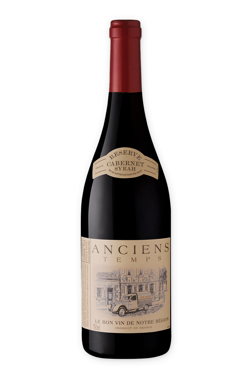 Você está comprando: VINHO ANCIENS TEMPS RESERVE CABERNET SYRAH TINTO 750MLPaís de origem: FrançaValidade: IndeterminadaSOBRE O PRODUTO<br /> Elaborado a partir de vinhas plantadas no sul da França, na região de Languedoc-Roussillon, este tinto revela notas de especiarias, frutas pretas, como cerejas pretas, amoras e groselhas pretas, além de toques de baunilha e de chocolate. Um tinto fácil de beber, ideal para acompanhar massas com molhos de tomate, carnes vermelhas grelhadas e queijos, como o Grana Padano.<br /> <br /> A marca Anciens Temps é uma gama de vinhos autênticos e agradáveis que o levarão a uma viagem pela história…criados a partir de variedades conhecidas, provenientes de vinhas de qualidade superior, estes vinhos são um equilíbrio perfeito entre o antigo e o novo. Com o seu rótulo clássico e design vintage, torna muito fácil regressar aos tempos antigos… agarre-se a esse sentimento enquanto desfruta deste vinho cheio de sabor e fácil de beber.<br /> <br /> <br /> Características<br /> <br /> Uva: Cabernet Sauvignon,Syrah<br /> Amadurecimento: Breve estágio em carvalho<br /> Temperatura: 16°C - 18°C<br /> Estilo: Quase seco<br /> Corpo: Medio<br /> <br /> <br /> Harmonize com:<br /> <br /> Carnes Vermelhas<br /> Massas<br /> Queijos<br /> <br />