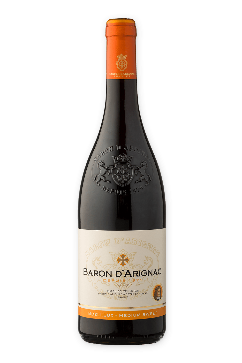 Você está comprando: VINHO BARON D'ARIGNAC DEPUIS 1979 MOELLEUX TINTO 750MLPaís de origem: FrançaValidade: IndeterminadaSOBRE O PRODUTO<br /> Uma das marcas mais tradicionais de vinhos franceses. Após a colheita, as uvas passam pelo processo tradicional de vinificação, proporcionando um vinho descomplicado de coloração rubi, aromas que lembram frutas em compota e de paladar sutil e sedoso, surpreendente a cada taça. Ideal para brindar os prazeres do dia a dia!<br /> <br /> O Baron D'Arignac é a marca de vinhos francês mais consumida no Brasil. A marca nasceu em 1979 e desde então sua presença cresce em todos os continentes. Os vinhos são originários de uma variedade de vinhedos da região do Languedoc Roussilion, entre o sul e o sudeste da França.<br /> <br /> <br /> Características<br /> <br /> Uva: Carignan,Grenache<br /> Amadurecimento: Sem estágio em carvalho<br /> Estilo: Quase doce<br /> Corpo: Médio<br /> <br /> <br /> Harmonize com:<br /> <br /> Carnes Vermelhas<br /> Massas<br /> Queijos<br /> <br />