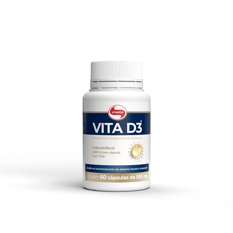 <p>A <strong>Vitamina D3 Vitafor 500mg com 60 cápsulas</strong>, é um suplemento alimentar que fornece 2000UI de colecalciferol, uma forma da vitamina D, também conhecida como “vitamina D3”, livre de alergênicos e corantes. É uma vitamina lipossolúvel, ou seja, solúvel em gorduras. Sua deficiência é muito comum, sendo necessário repor a perda através de suplementação.</p> Sugestão de consumo: <p>Suplemento de uso adulto e para crianças maiores de 9 anos. Recomenda-se consumir 1 cápsula (0,5g) por dia.</p> Motivos para escolher o produto: <ul> <li> <p>Prático</p> </li> <li> <p>2000UI de vitamina D3 por cápsula</p> </li> <li> <p>Sem açúcar</p> </li> <li> <p>Sem glúten</p> </li> <li> <p>Livre de adoçantes artificiais</p> </li> <li> <p>Livre de corantes</p> </li> <li> <p>Livre de conservantes</p> </li> <li> <p>Isento de lactose</p> </li> <li> <p>Isento de gordura trans</p> </li> </ul> Sobre a marca: <p>A Vitafor é uma marca brasileira de suplementos alimentares com padrão de alta qualidade e eficácia, que valoriza o desenvolvimento sustentável, incorporando esse conceito a suas operações diárias. Os resíduos da fabricação dos produtos são mínimos, as embalagens utilizadas em todo o processo são recicladas e seus produtos são atóxicos, beneficiando a sua saúde e cuidando da natureza e do meio ambiente em parceria com a comunidade.</p>