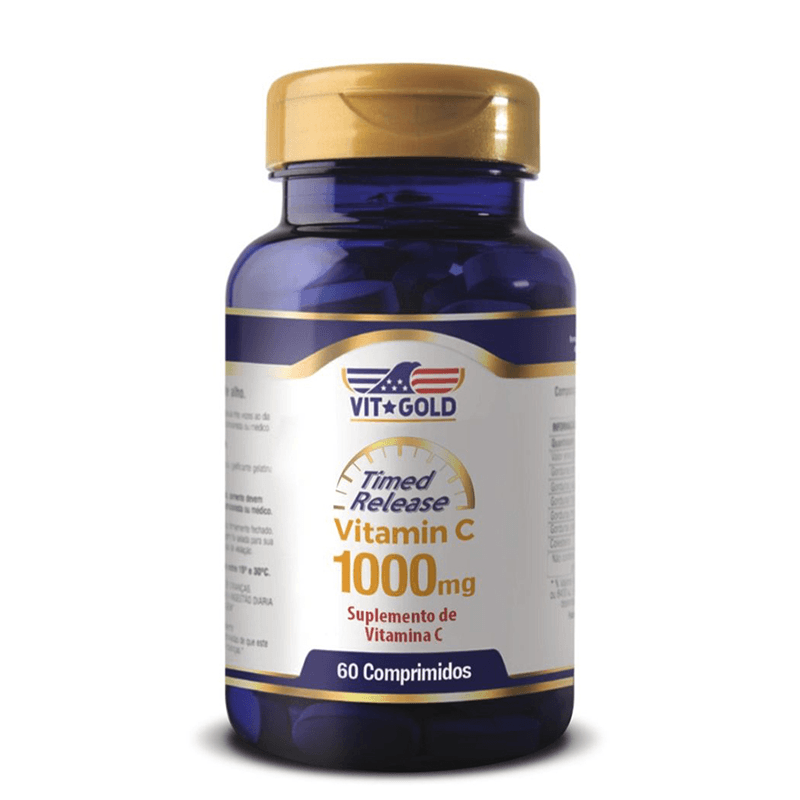 <p>A <strong>Vitamina C 1000mg Timed Release Vitgold com 60 comprimidos</strong> ganha destaque, especialmente pela sua capacidade antioxidante que protege estruturas celulares do estresse oxidativo.</p> <p>A função TIMED RELEASE propicia a liberação gradual da Vitamina C no organismo.</p> Sugestão de consumo: <p>Sugere-se 01 comprimido ao dia durante a refeição principal.</p> Motivos para escolher o produto: <ul> <li> <p>Auxilia na regeneração da forma reduzida da vitamina E</p> </li> <li> <p>Ajuda na absorção de ferro dos alimentos</p> </li> <li> <p>Melhora o funcionamento do sistema imunológico</p> </li> <li> <p>Importante na formação de colágeno</p> </li> <li> <p>Ajuda a diminuir efeitos de gripes e resfriados</p> </li> <li> <p>Melhora a cicatrização</p> </li> </ul> Sobre a marca: <p>A <strong>VitGold</strong>‚ é uma empresa de suplementos vitamínicos e minerais dos Estados Unidos, com atividades no Brasil desde 1994. Seus produtos são produzidos em laboratórios credenciados e validados por órgãos como a FDA nos Estados Unidos e a ANVISA no Brasil, garantindo a qualidade dos suplementos.</p>