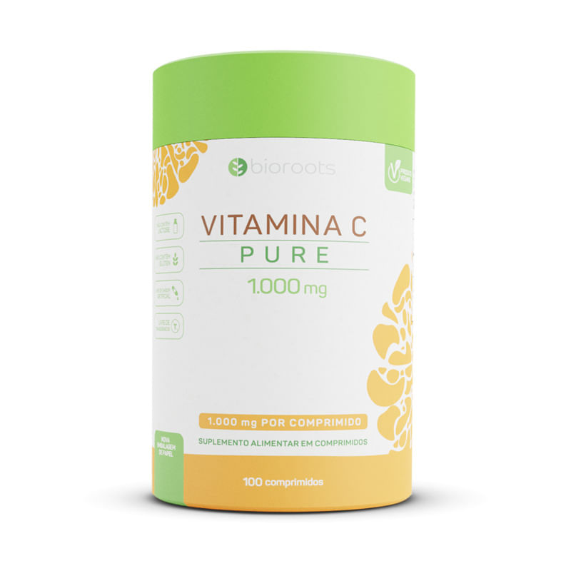 <p>A <strong>vitamina C Pure da Bioroots </strong>é vegana, sem aditivos, sem lactose, glúten ou transgênicos. A fórmula possui alta concentração de ácido ascórbico, fornecendo 1000 mg de vitamina C por dose.</p> <h2><strong>Sugestão de consumo:</strong></h2> <p>Consumir 1 comprimido ao dia, ou conforme orientação profissional. </p> <h2><strong>Motivos para escolher o produto:</strong></h2> <ul> <li> <p>Sem glúten e sem lactose;</p> </li> <li> <p>Livre de sabor artificial;</p> </li> <li> <p>Produto vegano;</p> </li> <li> <p>Sem ingredientes transgênicos;</p> </li> <li> <p>Embalagem sustentável: feita de papel;</p> </li> <li> <p>Rende 100 doses;</p> </li> </ul> <h2><strong>A Marca</strong></h2> <p>A Bioroots é uma linha de suplementos da Divina Pharma que foi desenvolvida para tornar acessível a todos o consumo de ingredientes naturais, veganos, livres de transgênicos, açúcares, glúten e lactose. Além disso, os produtos da Bioroots possuem embalagem feita de papel, firmando o compromisso com a sustentabilidade.</p> <p> </p>