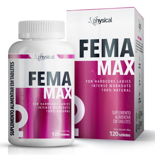 Vitaminas e Minerais Physical Pharma Fema Max 120 TabletesFema Max Physical Pharma é indicado para atletas amadores e profissionais que buscam um aliado que atue de forma natural em seu organismo para o aumento de energia, resistência, aumento de força, construção muscular e melhora no desempenho físico.Benefícios:Otimiza o metabolismoSaúde da peleEstimula a síntese proteicaIngredientes: Ácido Aspartico, Arginina, Bisglicinato de Magnésio, Aspartato de Zinco, Tetraborato de Sódio Decahidratado, Hialuronato de Sódio obtido pela fermentação de Streptococcus zoopidemicus, Vitamina B6 (Cloridrato de Pridoxina), Biotina, Vitamina B12 (Cianocobalamina), Agente de Massa Celulose Microcristalina, Lubrificante Estearato de Magnésio e Antiumectante Dióxido de Silício. NÃO CONTÉM GLÚTEN. ALÉRGICOS: PODE CONTER AMENDOIM, LEITE, SOJA E OVO.Compre agora as Vitaminas e Minerais Physical Pharma Fema Max 120 Tabletese garanta uma entrega rápida e segura!