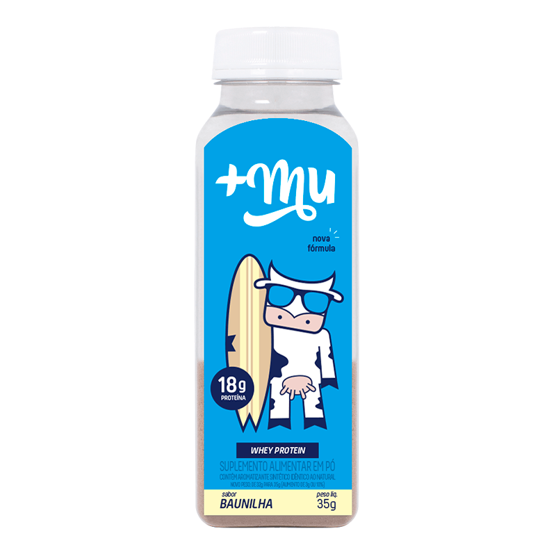 <p>A Garrafinha de Proteína Baunilha, da +Mu, 32g, é um produto com whey protein concentrado, enriquecido com TCM e isento de glúten. É uma ótima alternativa de lanche proteico entre as refeições, pré treino ou pós treino. Muito prático, basta adicionar água ou leite e beber e ainda possui a facilidade da embalagem individual com o selo da Eureciclo, um certificado de sustentabilidade que permite a reciclagem das embalagens.</p>