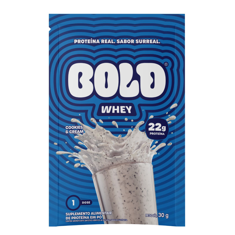 <p dir="ltr">O <strong>Bold Whey Cookies &amp; Cream</strong> &eacute; um suplemento proteico feito com o blend de whey protein concentrado, isolado e hidrolisado, garantindo 22 g de prote&iacute;na por dose. Com uma f&oacute;rmula super saborosa, ele &eacute; zero em adi&ccedil;&atilde;o de a&ccedil;&uacute;cares e isento de gordura trans.</p> <h2 dir="ltr">Sobre os ingredientes:&nbsp;</h2> <p dir="ltr"><strong>Whey protein concentrado (WPC):</strong> suplemento proteico que passa por um processo de filtragem simples onde as prote&iacute;nas do leite s&atilde;o concentradas.</p> <p dir="ltr"><strong>Whey protein isolado (WPI):</strong> passa por um processo minucioso de filtragem, eliminando a lactose e a case&iacute;na.&nbsp;&nbsp;</p> <p dir="ltr"><strong>Whey protein hidrolisado (WPH):</strong> al&eacute;m de ter um processo minucioso de filtragem, essa prote&iacute;na passa por um processo chamado hidr&oacute;lise, onde as mol&eacute;culas de prote&iacute;nas s&atilde;o quebradas em segmentos ainda menores, chamados pept&iacute;deos, o que torna a digest&atilde;o e absor&ccedil;&atilde;o mais f&aacute;cil pelo organismo.</p> <h2 dir="ltr">Sugest&atilde;o de consumo:</h2> <p dir="ltr">Dilua um sach&ecirc; (30g) na &aacute;gua ou leite.</p> <h2 dir="ltr">Motivos para escolher o produto:</h2> <ul> <li dir="ltr" aria-level="1"> <p dir="ltr" role="presentation">Elaborado com o blend proteico: whey protein concentrado, isolado e hidrolisado;&nbsp;</p> </li> <li dir="ltr" aria-level="1"> <p dir="ltr" role="presentation">Zero adi&ccedil;&atilde;o de a&ccedil;&uacute;cares;</p> </li> <li dir="ltr" aria-level="1"> <p dir="ltr" role="presentation">Cont&eacute;m 22 g de prote&iacute;na por dose;</p> </li> <li dir="ltr" aria-level="1"> <p dir="ltr" role="presentation">Pr&aacute;tico para consumo e transporte: sach&ecirc; com dose &uacute;nica;</p> </li> <li dir="ltr" aria-level="1"> <p dir="ltr" role="presentation">Isento de gordura trans.&nbsp;</p> </li> </ul> <h2 dir="ltr">A Marca</h2> <p dir="ltr">A <strong>Bold</strong> &eacute; uma marca mineira de barrinhas proteicas e funcionais e tem o prop&oacute;sito de tornar o saud&aacute;vel, pr&aacute;tico e delicioso. Com isso, tem a miss&atilde;o de fazer as pessoas se apaixonarem pela alimenta&ccedil;&atilde;o saud&aacute;vel. Fazem isso atrav&eacute;s de produtos que, al&eacute;m de nutrir, trazem um sabor SURREAL.</p>