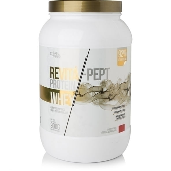 Whey Protein Revitá Pept, Frutas Vermelhas, da Chá Mais é elaborado com proteína isolada do soro do leite (Whey protein isolado), além de conter peptídeos de glutamina e peptídeos de leucina, que pode estimular o ganho de massa muscular. Contém mix de enzimas proteolíticas que otimizam a digestão e absorção dos aminoácidos.<br> <br> Por que escolher esse produto?<br> Com polpa de morango e de frutas vermelhas<br> Adoçado com Stevia<br> Fornece 28g de proteínas por dose<br> 92% de proteína<br> Com mix de enzimas<br> Sem glúten<br> Sem açúcar<br> Recomendação de consumo:<br> Diluir 1 colher medida (scoop) em 100ml de água, duas vezes ao dia ou conforme indicação de nutricionista e/ou médico.<br> <br> Sobre a marca: <br> A Chá Mais é uma empresa que está há muitos anos no mercado de produtos naturais, sendo uma das maiores no ramo e referência no Brasil. Com um portfólio vasto, engloba produtos como suplementos alimentares, nutracêuticos, chás, encapsulados, shakes e cereais. Conta também com uma linha de produtos funcionais produzida com os melhores ingredientes.