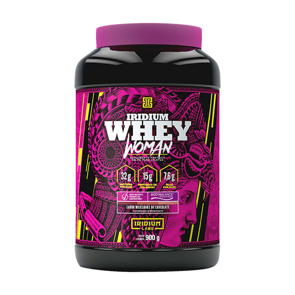 O Whey Woman chocolate ao leite, da Iridium Labs, é um suplemento proteico feito com uma fórmula exclusiva para o público feminino. Reúne diversos aminoácidos, vitaminas e colágeno bodybalanceⓇ. Cada dose do produto fornece 32g de proteína e 15g de peptídeo de colágeno.
