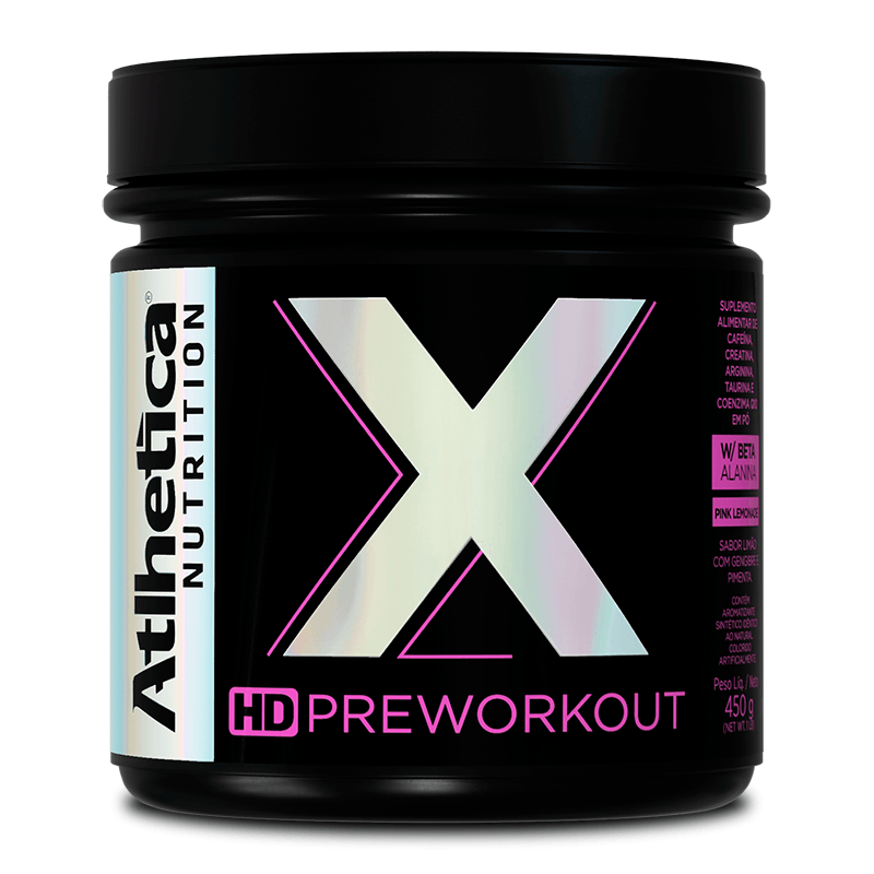 <p>O <strong>X HD Pre Workout Pink Lemonade Atlhetica</strong>, é uma nova opção para pessoas que buscam aliar uma rotina intensa de treinos com a tecnologia e inovação de uma fórmula inteligente.</p> <p>Auxiliando na redução da fadiga muscular, X HD Preworkout com Beta-Alanina, aumenta a resistência física, força, crescimento muscular e desempenho atlético durante treinos mais longo.</p> <p>X HD Preworkout com Beta-Alanina estimula o desempenho físico em treinos, atividades físicas e esportes auxiliando na recuperação muscular e reduzindo a fadiga muscular. É o seu desempenho ainda mais potencializado.</p> Sobre os ingredientes: <p>Formula x (creatina monohidratada, beta-alanina, taurina, l-arginina, cafeína, niacina, coenzima q10), isomaltulose (palatinose), amido amilopectina (waxy maize), gengibre em pó, pimenta caiena, polpa de maçã desidratada, acidulante ácido cítrico, antiumectantes fosfato tricálcico e dióxido de silício, aromatizante, edulcorante sucralose, corantes artificiais bordeaux s, ponceau 4r e amarelo crepúsculo fcf. Não contém Glúten. Não contém lactose.</p> Alergênicos: pode conter derivados de soja. Sugestão de uso: <p>Consumir diariamente 15 g (2 dosadores cheios) em 200 ml de água gelada (2.000 mg de beta-alanina). Indicado para indivíduos saudáveis a partir de 19 anos.</p> Motivos para escolher o produto: <ul> <li> <p>Sem glúten</p> </li> <li> <p>Sem lactose</p> </li> <li> <p>Auxilia no foco, energia e disposição para treinos intensos</p> </li> <li> <p>Estimula o desempenho físico</p> </li> <li> <p>Niacina (Vitamina B3)</p> </li> </ul> Sobre a marca: <p>A <strong>Atlhetica</strong>, é uma empresa no qual os produtos são desenvolvidos pela ADS Laboratório Nutricional, que produz suplementos alimentares inovadores com alta qualidade e tecnologia avançada, é considerada a maior indústria de suplementos alimentares do Brasil. Os são fabricados seguindo as normas estabelecidas pela ANVISA (Agência Nacional de Vigilância Sanitária) e pelas Boas Práticas de Fabricação (BPF), proporcionando a qualidade, bem-estar e a eficácia que os consumidores tanto desejam.</p>
